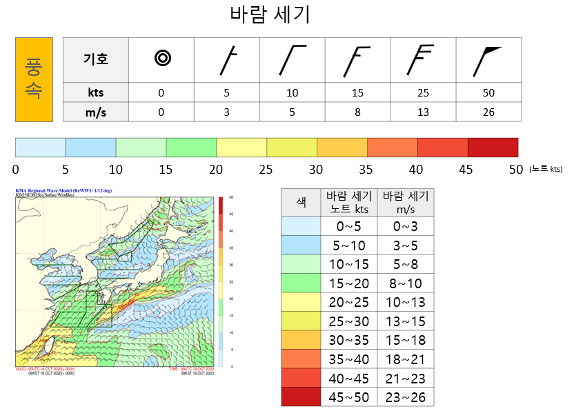 해상풍은 아래와 같은 범례로 표기됩니다.